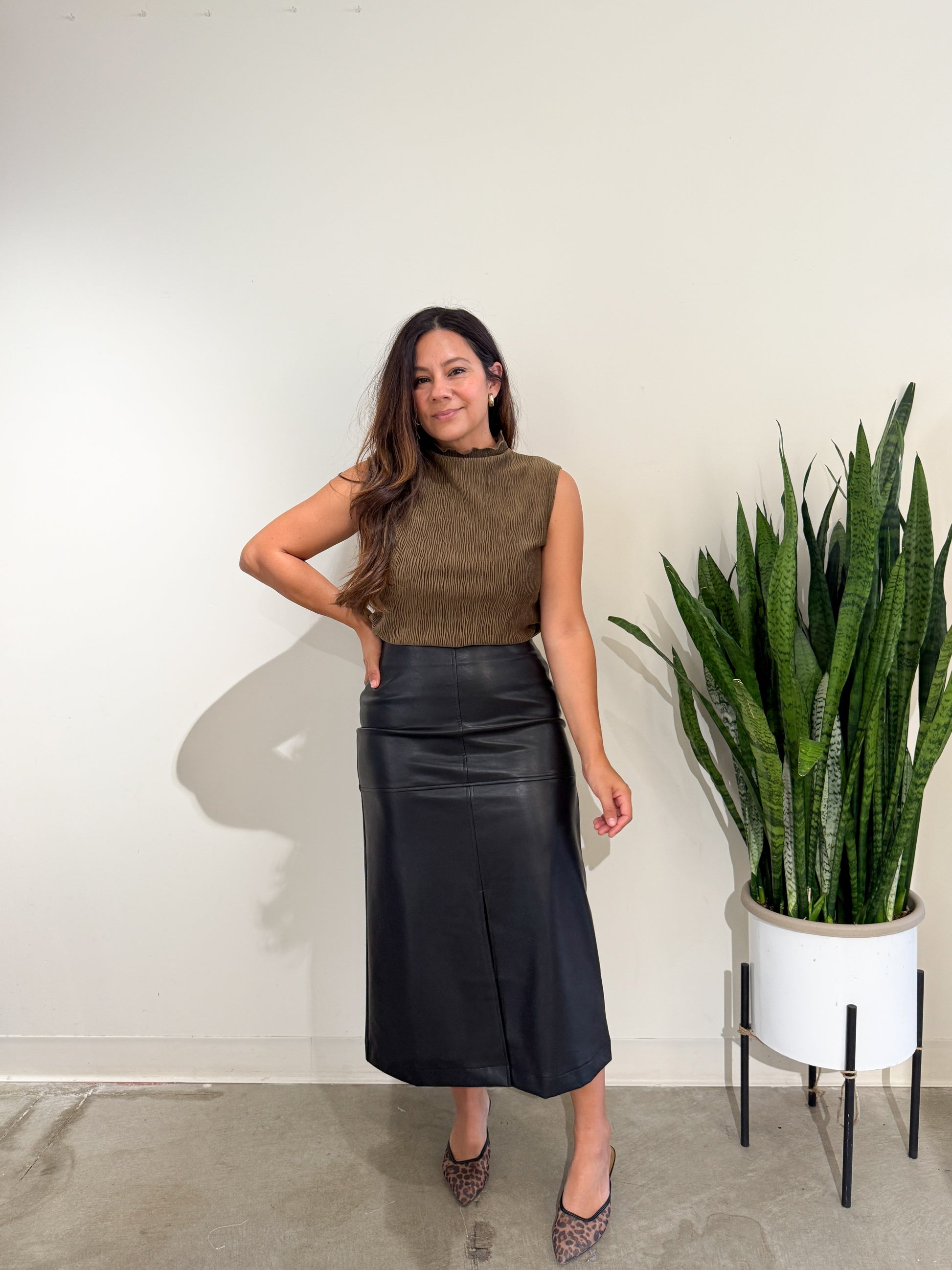 Monica is wearing a small
