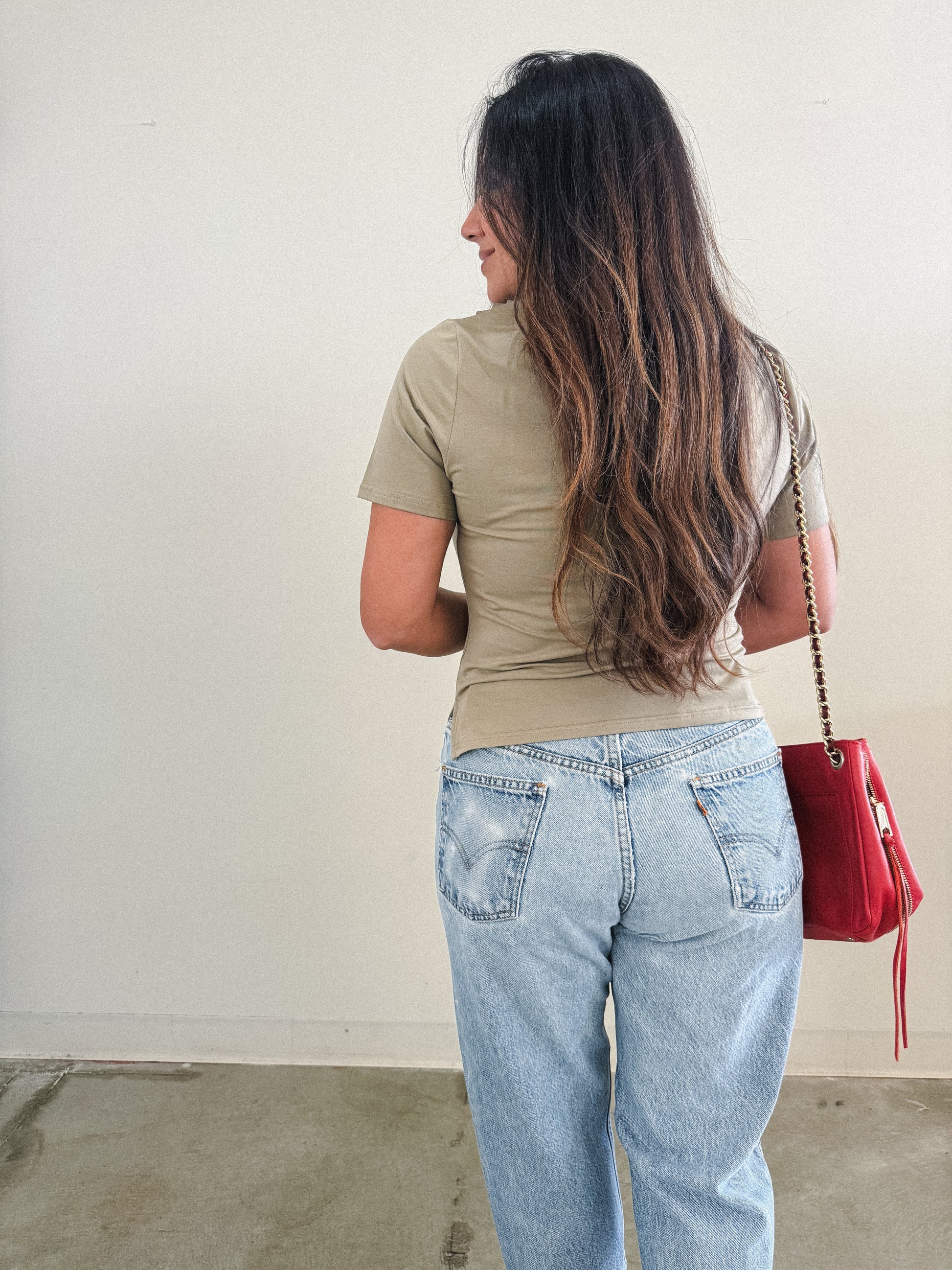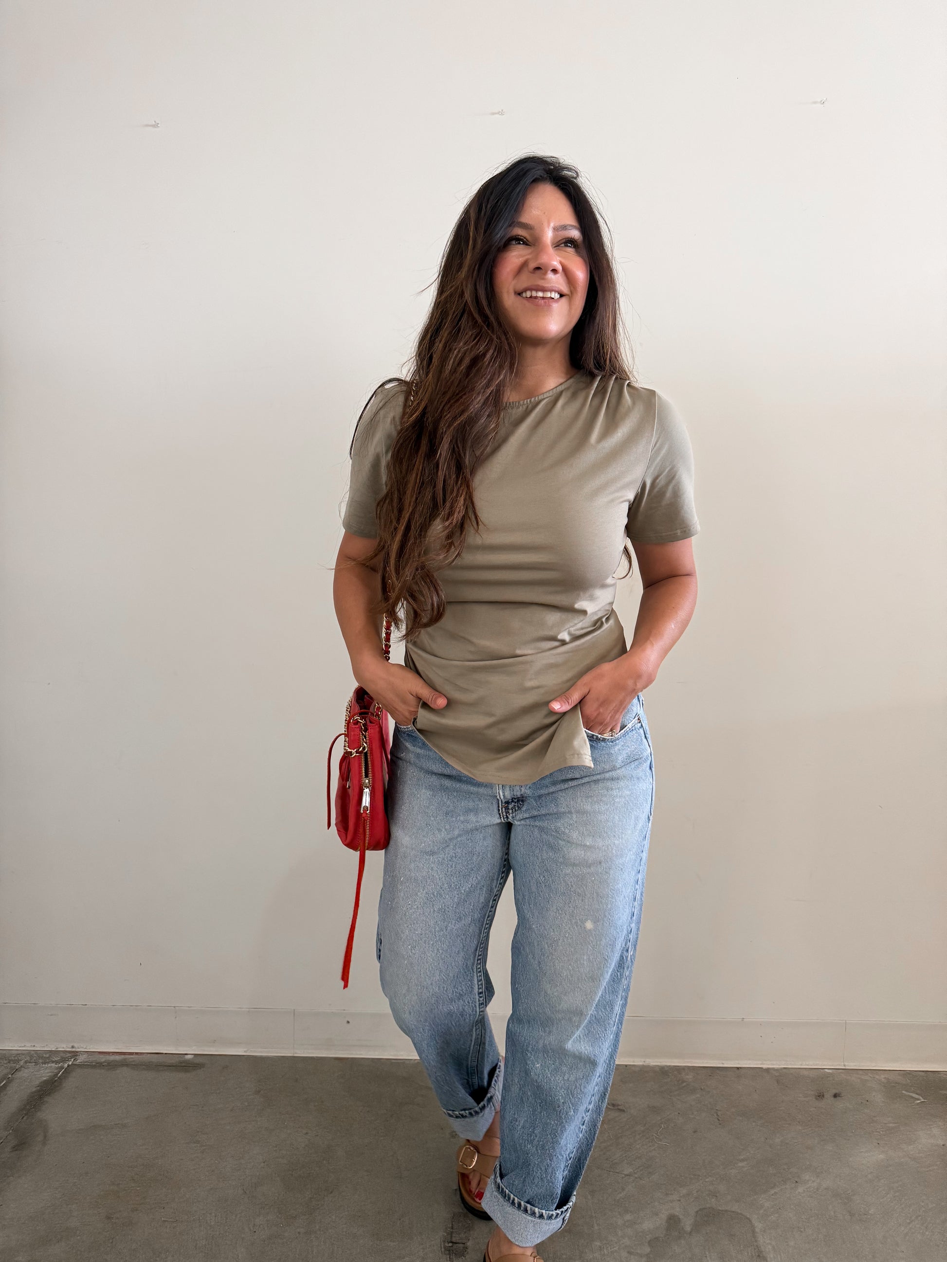 Monica wears a Medium